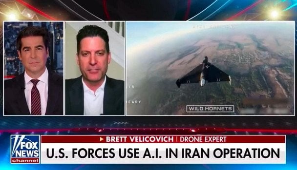 Розповідь експерта про інноваційні американські дрони зі штучним інтелектом, які нібито протидіють іранським атакам, супроводжувало відео застосування українських дронів-перехоплювачів Sting для знищення російських «Шахедів». При цьому на опублікованих кадрах був навіть логотип виробника.